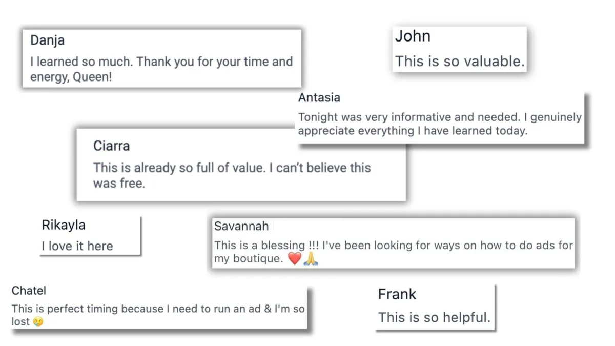 DISCLAIMER: Sales figures mentioned in this page and throughout my presentations are my clients / students true figures. While they are exceptional, it is not typical. There’s no guarantee that you or others will achieve the same results. Individual outcomes will depend on a lot of factors - skills and capabilities, work ethic, business saviness, mindset, and diligence in applying these strategies. Any kind of business has risks and taking action is necessary. This is not for you if you won’t give effort and time to learn. This site is not endorsed by Facebook in any way. FACEBOOK is a trademark of FACEBOOK, Inc.